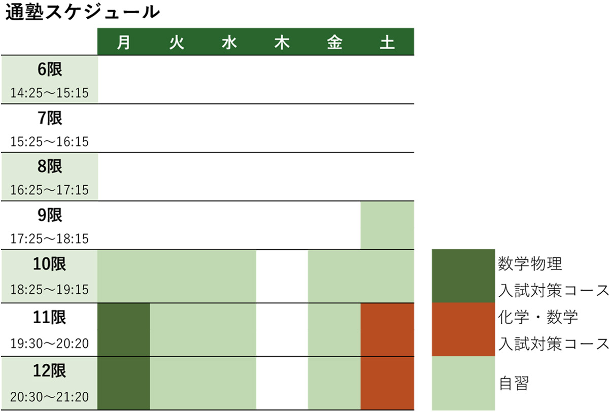 大手予備校等に通っているが、質問や演習の時間を確保したいというお悩みに応えます。科目・単元は進度・テスト範囲に応じて柔軟に変更できるので、苦手分野を確実に克服します。